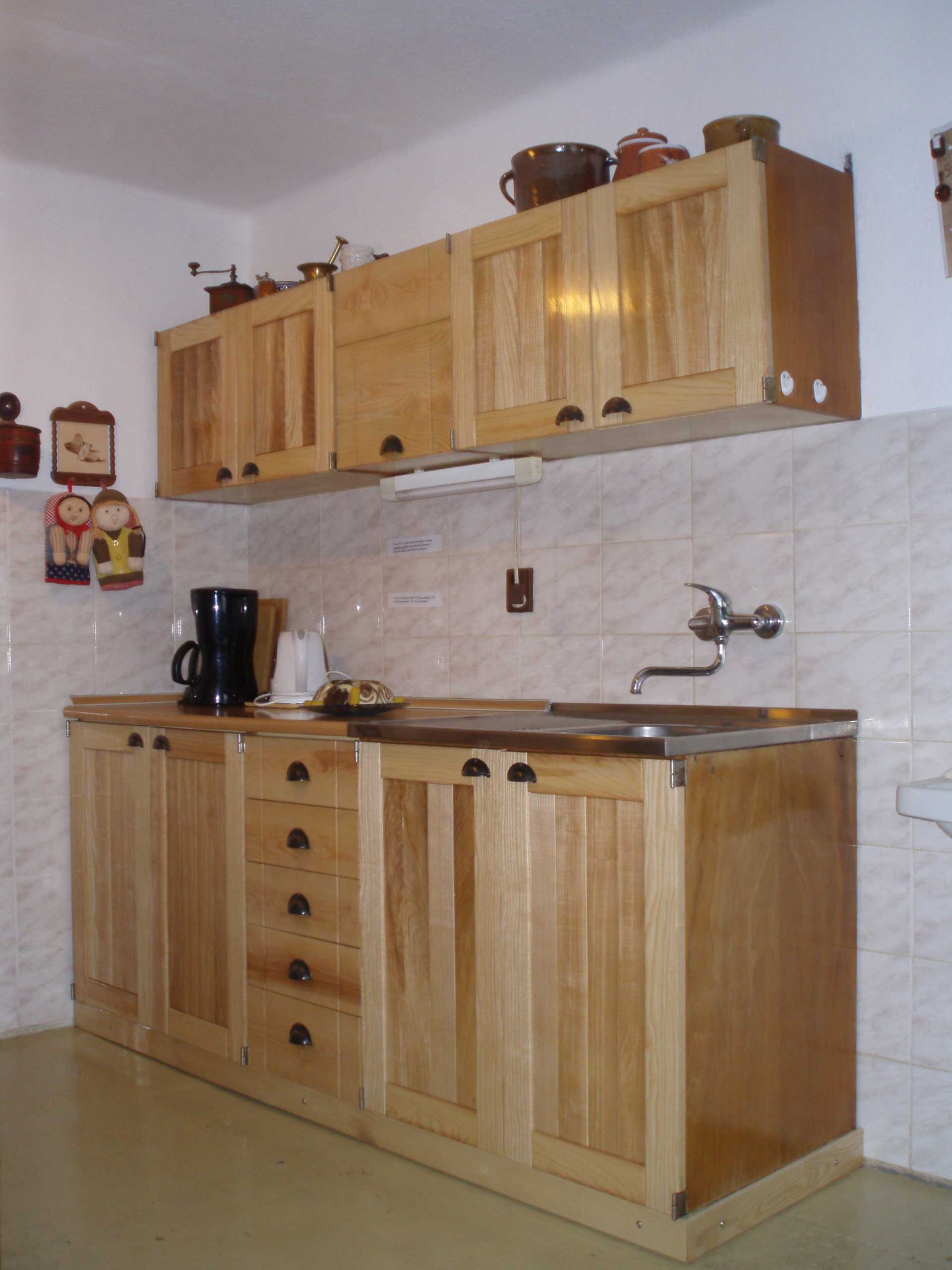 Kuchyňská linka, elektrický sporák se 4-plotýnkovou varnou deskou, mikrovlnka, lednice, kávovar, varná konvice a veškeré potřebné nádobí a příslušenství.