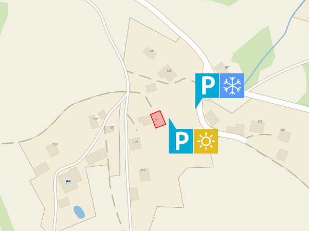 Parkování je možné v obdobích bez sněhu přímo u chalupy, v zimě poblíž pod chalupou (80m).